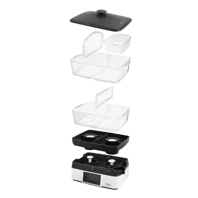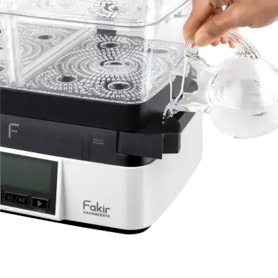 Fakir Premium Steam Buharlı Pişirici, 1800 W güçlü motoru ve 11 L geniş haznesi ile sağlıklı ve lezzetli yemeklerinizi hızlı ve pratik bir şekilde hazırlamanızı sağlar. Sebze, tavuk, balık gibi besinlerin vitamin ve minerallerini korur ve tam kıvamında pişirir. Otomatik kapanma özelliği, kullanıcılara güvenli bir deneyim sunarken sesli uyarı sistemi pişirme sürecinizi adım adım takip etme imkânı sağlar. Yiyeceklerinizi buharda pişirerek hızlı sonuçlar alabilir, yumuşak ve tam kıvamında lezzetler elde edebilirsiniz.